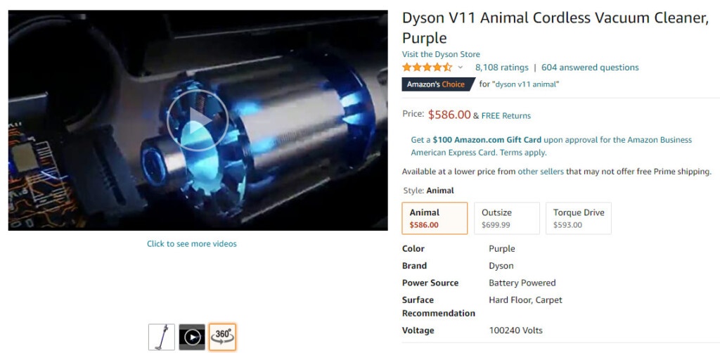 事实上,视频比图片更能直观地展现产品的功能和使用,所以当你的产品详情里有视频的时候,真的很容易促成转化。对于电器和一些操作比较复杂的产品,一个视频可能要比千句话还管用,比如上面Dyson吸尘器。