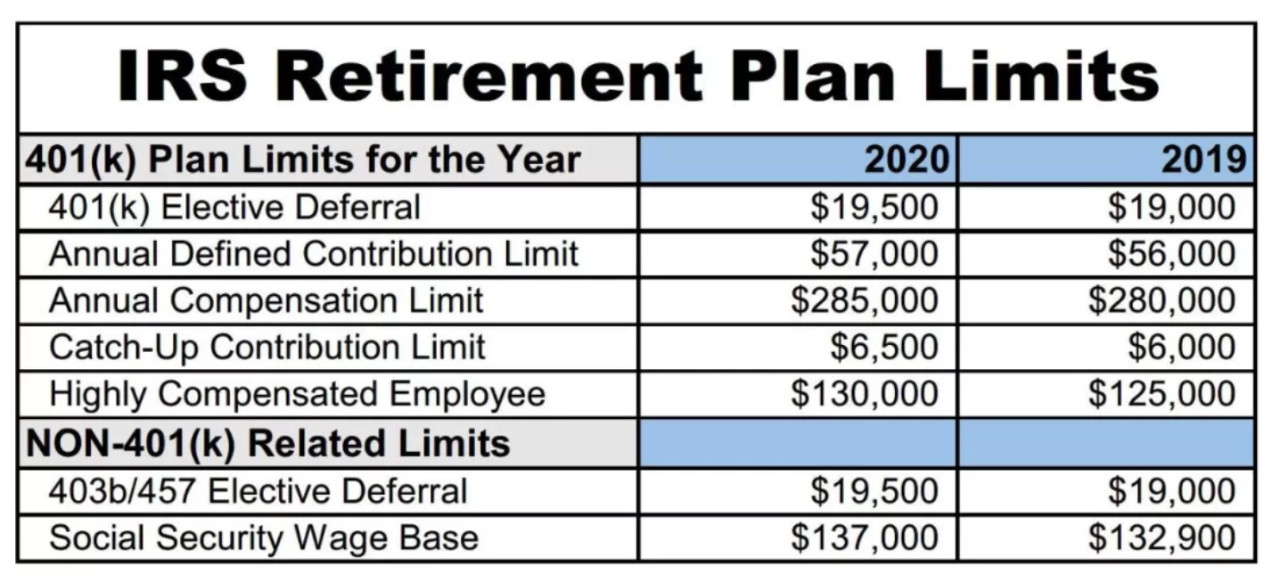 - 普通401K账号个人缴纳上限与2020年持平,仍未$19,500;